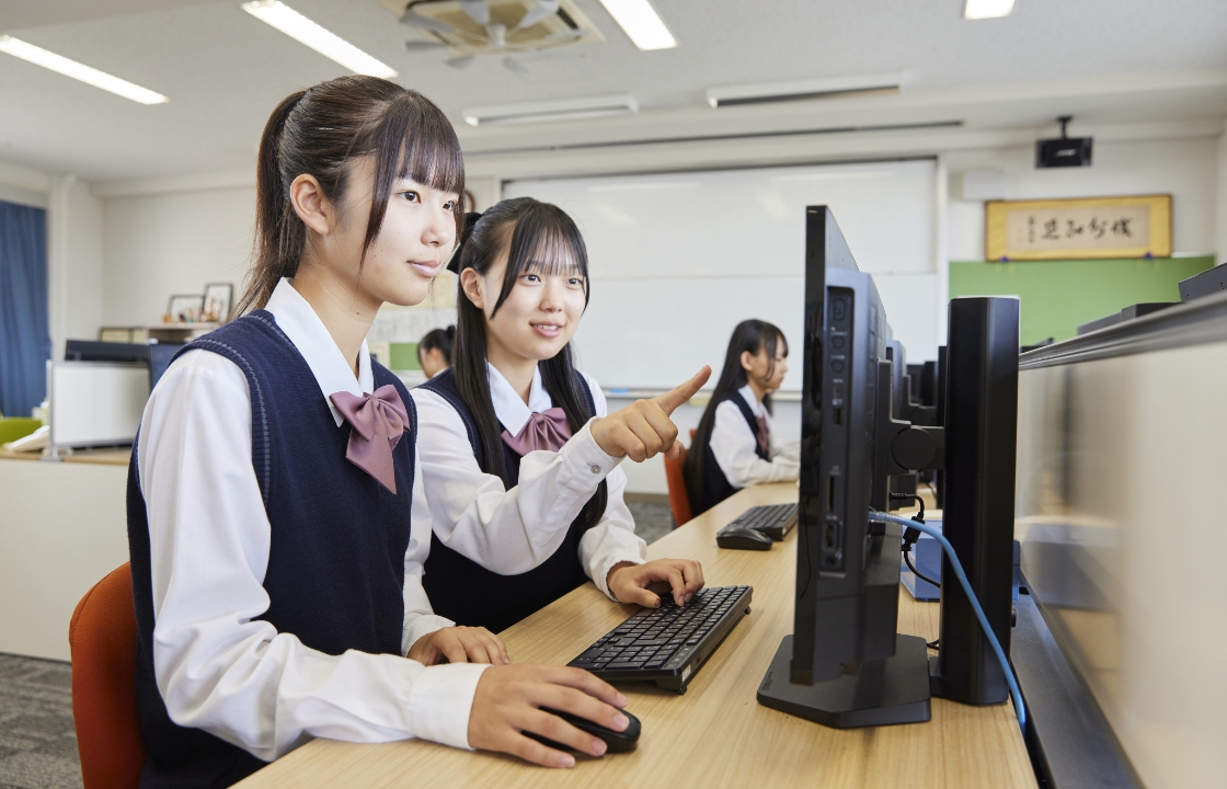 商業科は、基礎的な商業についての知識・技術を習得し、それを発展させる中で、ビジネス社会で活躍できる能力を育てます。