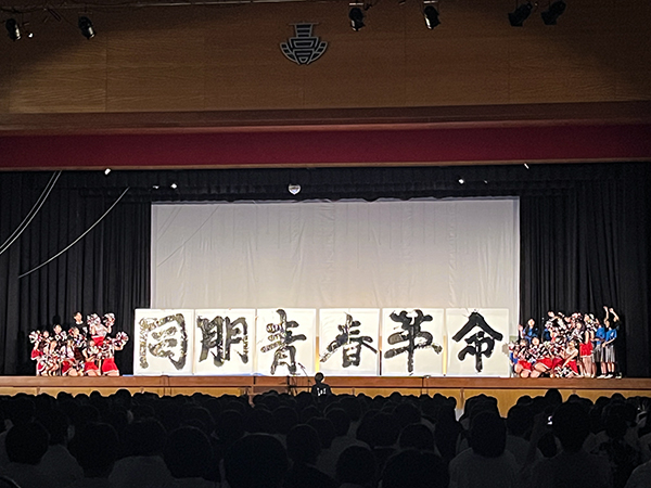 文化祭のオープニングでは、校長先生から「同朋生!やっちゃない祭!」 という大きな掛け声とともに2025年度文化祭の開会が宣言されました。